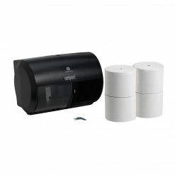 Compact 2-Roll Side-by-Side Coreless Toilet Paper Dispenser By GP PRO, Black (56784A)