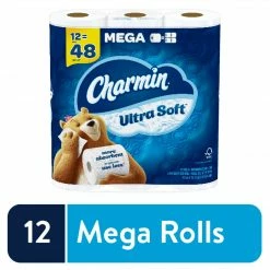 Charmin Ultra Soft Toilet Paper, 2-Ply, White, 244 Sheets/Roll, 12 Mega Rolls/Pack (61789)