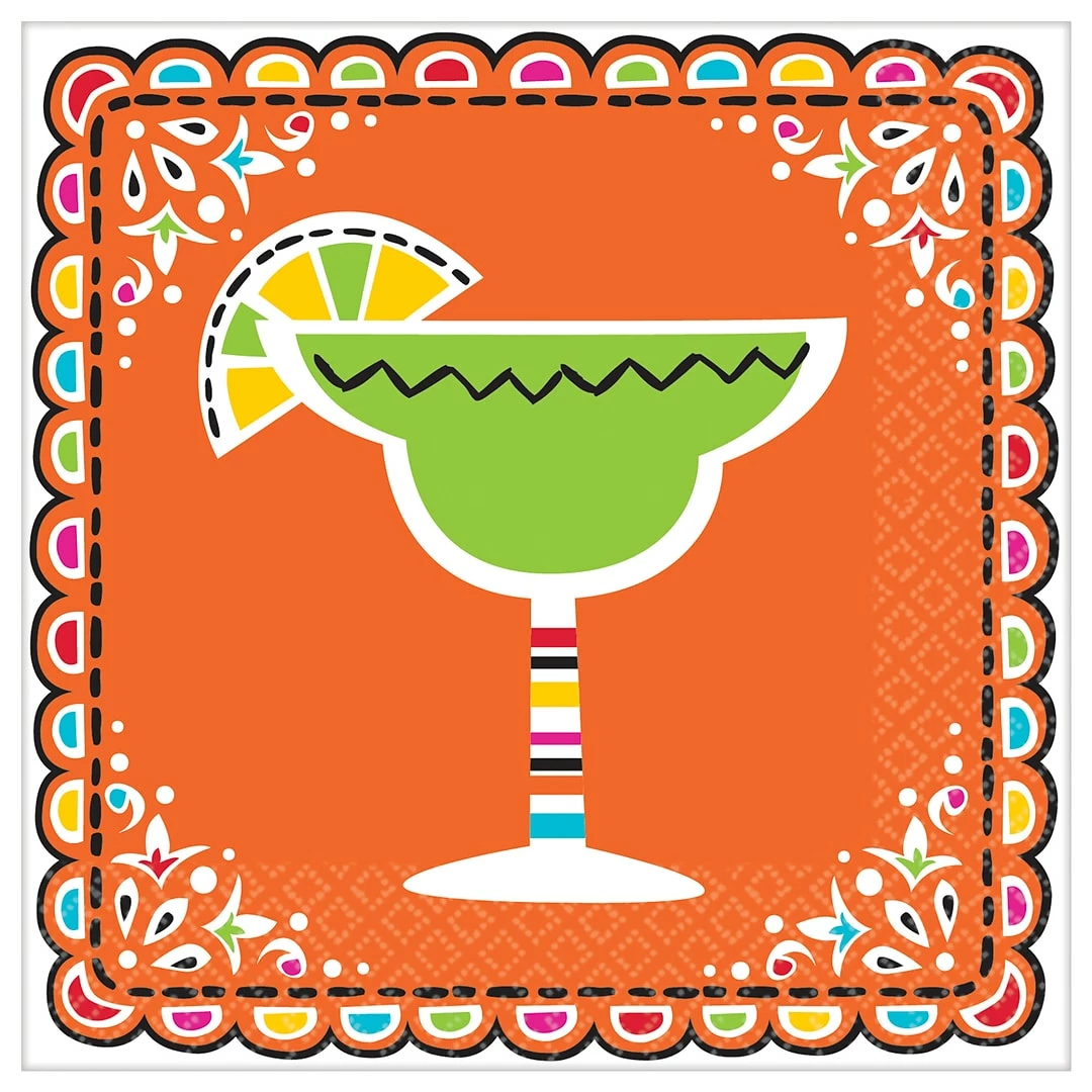 Papel picado means perforated paper and that translates to beautiful and elaborate designs traditionally considered Mexican folk art. These napkins are an homage to that style of art and with their color and playful icons they should fit right in at any Cinco de Mayo celebration.
