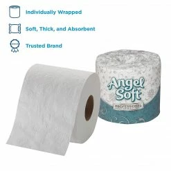Treat customers and staff to a premium tissue with Angel Soft professional series toilet paper. An embossed design adds a hint of upscale style to every square, while the soft, absorbent texture works to keep skin dry. This toilet tissue is safe for use in all sewer and septic systems, so you can feel confident stocking your office washrooms with these rolls. Each case contains 80 rolls of Angel Soft professional series toilet paper, giving you an easy way to maintain your restroom supply stock levels.