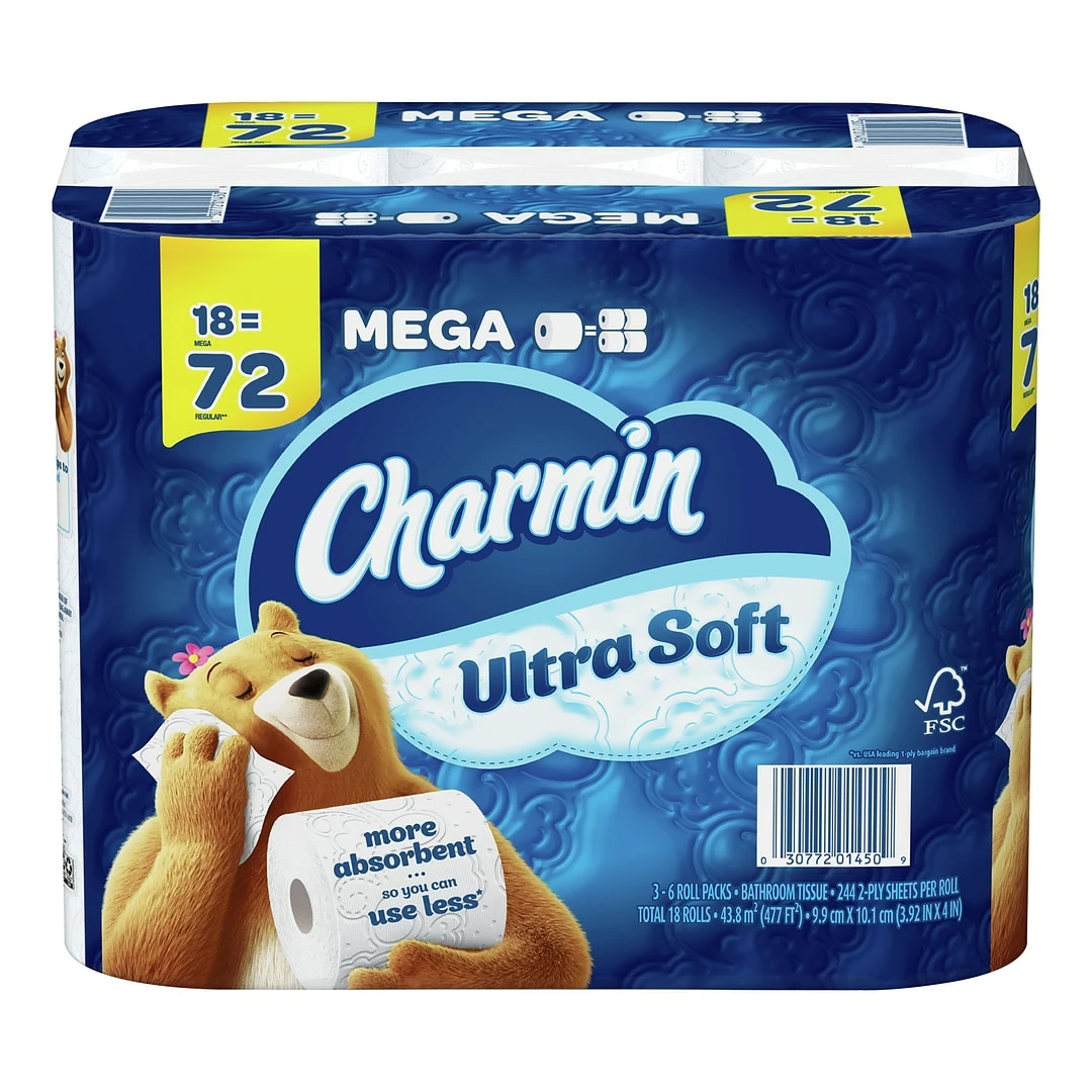 Enjoy fresh cleanups with these toilet paper rolls. The soft cushioned sheets offer gentle use that’s safe for sensitive skin, and the clog-free quality ensures safe use in septic and drainage systems. Each pack contains 18 mega rolls of 244-sheet Charmin toilet paper for ideal use in hotels, restaurants, and other commercial facilities.