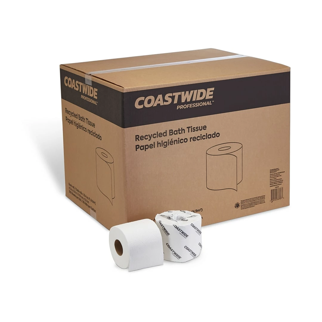 Maintain a steady supply of restroom essentials with this bulk pack of bath tissue rolls. The individually wrapped packaging promotes hygiene and helps to avoid cross-contamination. Two-ply construction provides enhanced strength and absorbency, along with a soft feel. Thoughtfully manufactured with no added dyes or fragrances and whitened without chemicals containing chlorine, these Coastwide Professional™ two-ply bath tissue rolls are an ideal choice for those with sensitive skin.