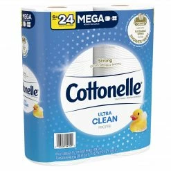 6 Mega Rolls of Cottonelle Ultra Clean Toilet Paper (6 Mega Rolls = 24 regular rolls*), 312 sheets per roll—packaging may vary from what is shown.