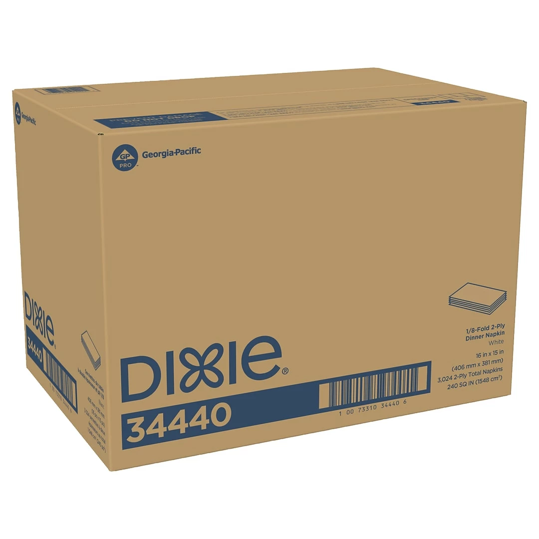 Dixie 2-ply dinner napkin is the right choice when you want a disposable napkin that speaks to your quality and attention to detail. This popular dinner napkin delivers a touch of distinction making it perfect for better restaurants, resorts, lodging, and healthcare facilities. The Dixie scrollwork pattern, soft hand feel, and classy coin edge embossing deliver better patron perception in this 3024-napkin case.