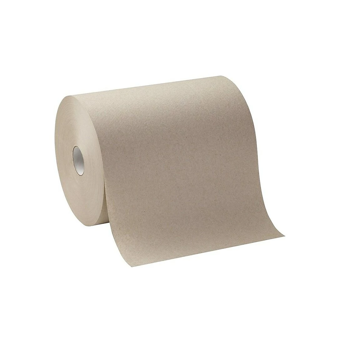 Pacific Blue Basic Recycled Hardwound Paper Towel, 1-Ply, Brown, 800’/Roll, 6 Rolls/Carton (26301)