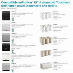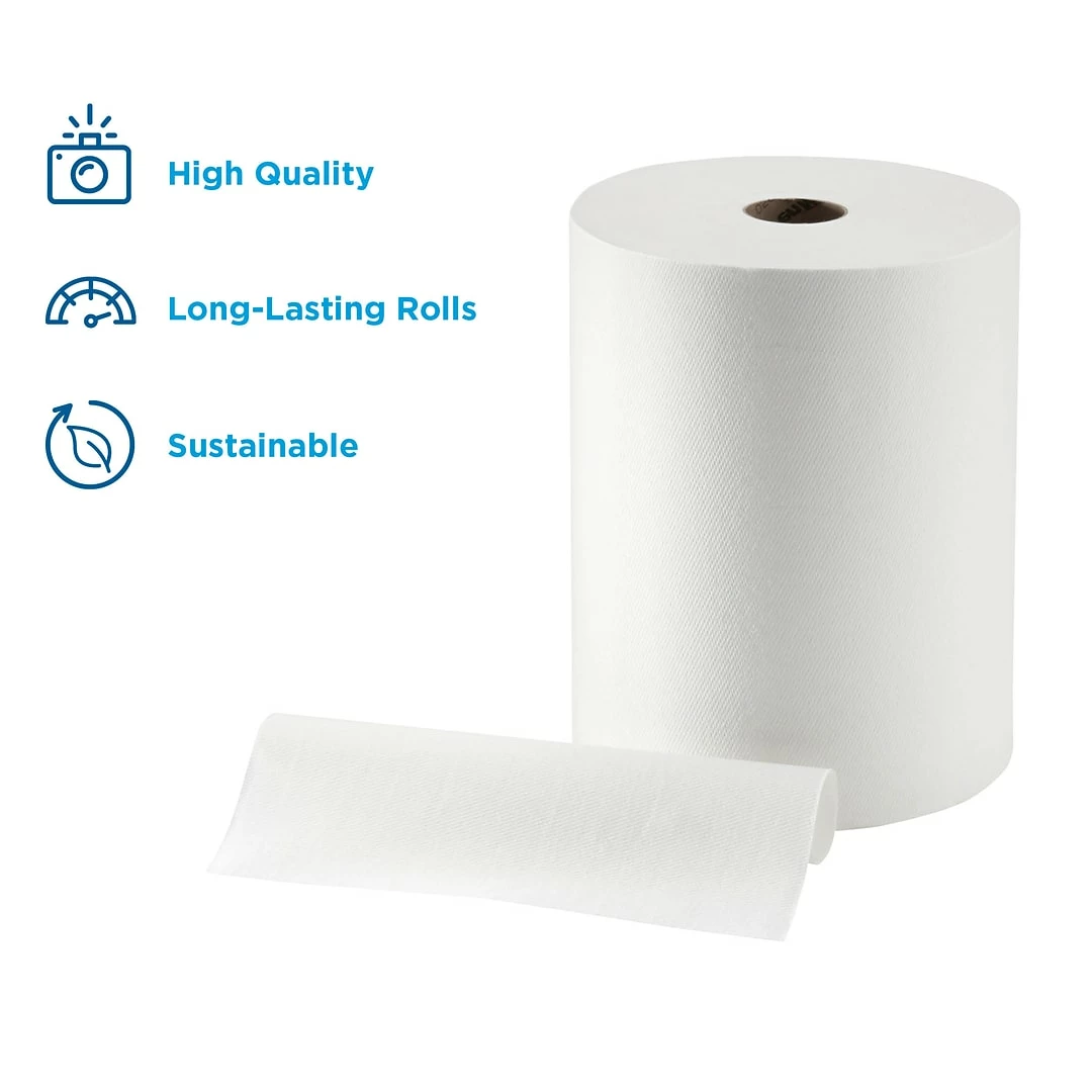 Compatible with enmotion touch-free paper towel dispensers, enmotion 1-ply white paper towel rolls are an economical and low-maintenance choice for your busy workplace. They allow up to 800 individual hand dries per roll.