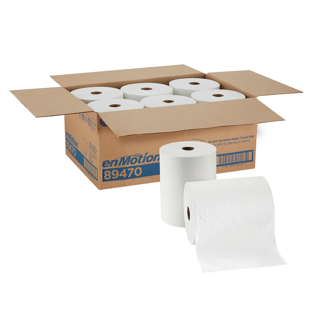 Keep these hardwound paper towels in stock for drying hands and wiping up spills. Featuring fast-acting absorbency pockets, these one-ply paper towels quickly wick away moisture, and the efficient drying power lets guests use fewer towels, so you can replenish supplies less often. These enmotion hardwound paper towels are soft on skin but tough for heavier cleanup, making them a perfect choice for stocking restrooms, supplying kitchens or keeping on hand near any sink.