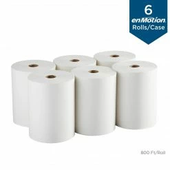 Keep busy restrooms or cleaning supply carts stocked with these recycled paper towel rolls. The high-capacity format delivers 800 feet of towels with a single roll, reducing the number of replacements needed. These enmotion hardwound paper towels are soft on skin but tough for heavier cleanup, making them a perfect choice for stocking restrooms, supplying kitchens or keeping on hand near any sink.