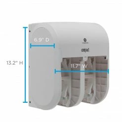 Compact® coreless toilet paper dispensing systems answer key needs for facilities managers when it comes to toilet paper for the restrooms. These high capacity systems help you avoid running out between service intervals and help reduce maintenance time typically spent changing out conventional toilet paper rolls. These systems save up to 95% in packaging waste compared to GP PRO’s standard roll toilet paper by eliminating stub-rolls, corrugate cores, paper roll wraps and the outer cardboard shipping case. And because the Compact® case has a smaller footprint, it requires less storage space. Compact® coreless toilet paper dispensers are designed to give the facility high capacity for continuous service. GP PRO is a division of Georgia-Pacific Consumer Products. We deliver well-designed, durable and easy-to-maintain professional solutions to meet the handwashing and cleaning needs for a range of business applications.