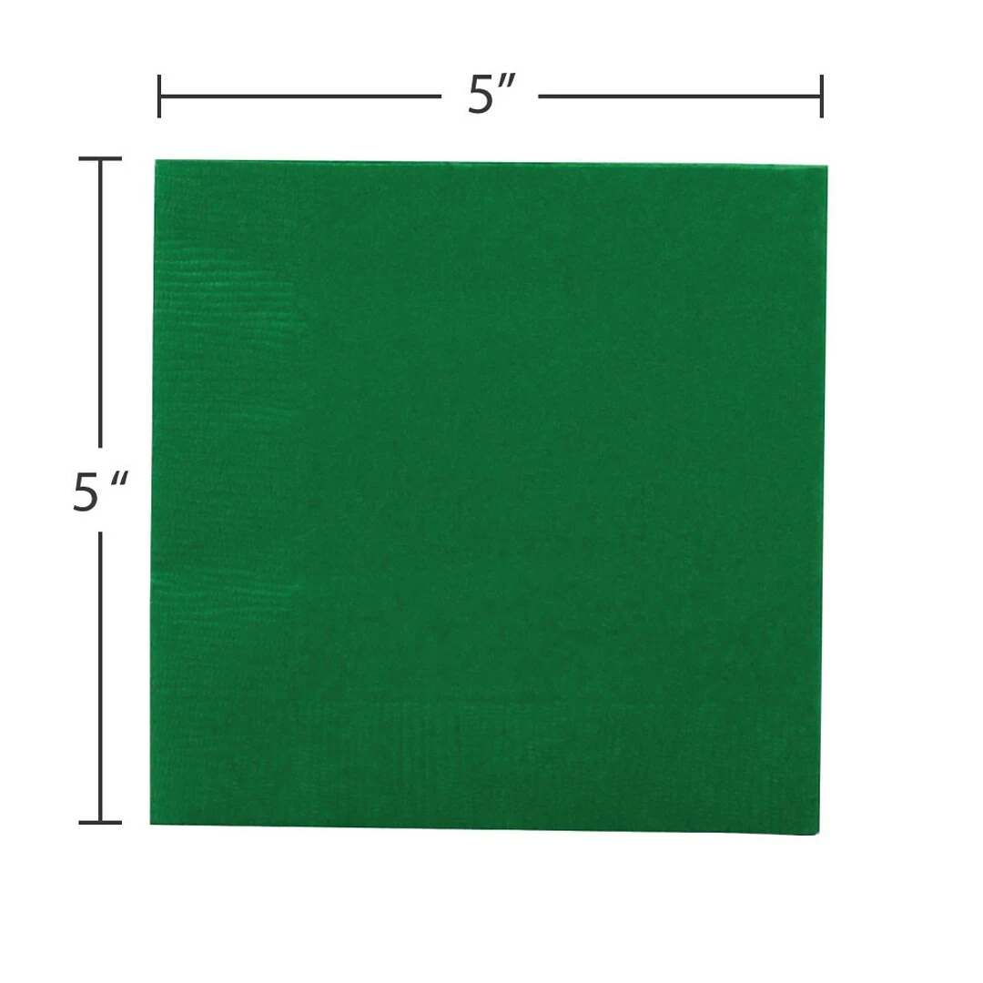 JAM Paper Green Small Beverage Napkins measure 5 x 5 inches in size and are made from smooth and durable paper. A total of 40 napkins are contained in this pack. Each one features a bold and forest-esque green color. Measuring 5 inches on each side, these napkins are perfectly square. This shape and size makes them great for placing under the glasses and cups on your table to soak up condensation. Their color makes them great for use at birthdays, graduation parties, reunions, picnics, and more! Complete your table setting with these practical, stylish, and eye-catching green beverage napkins.
