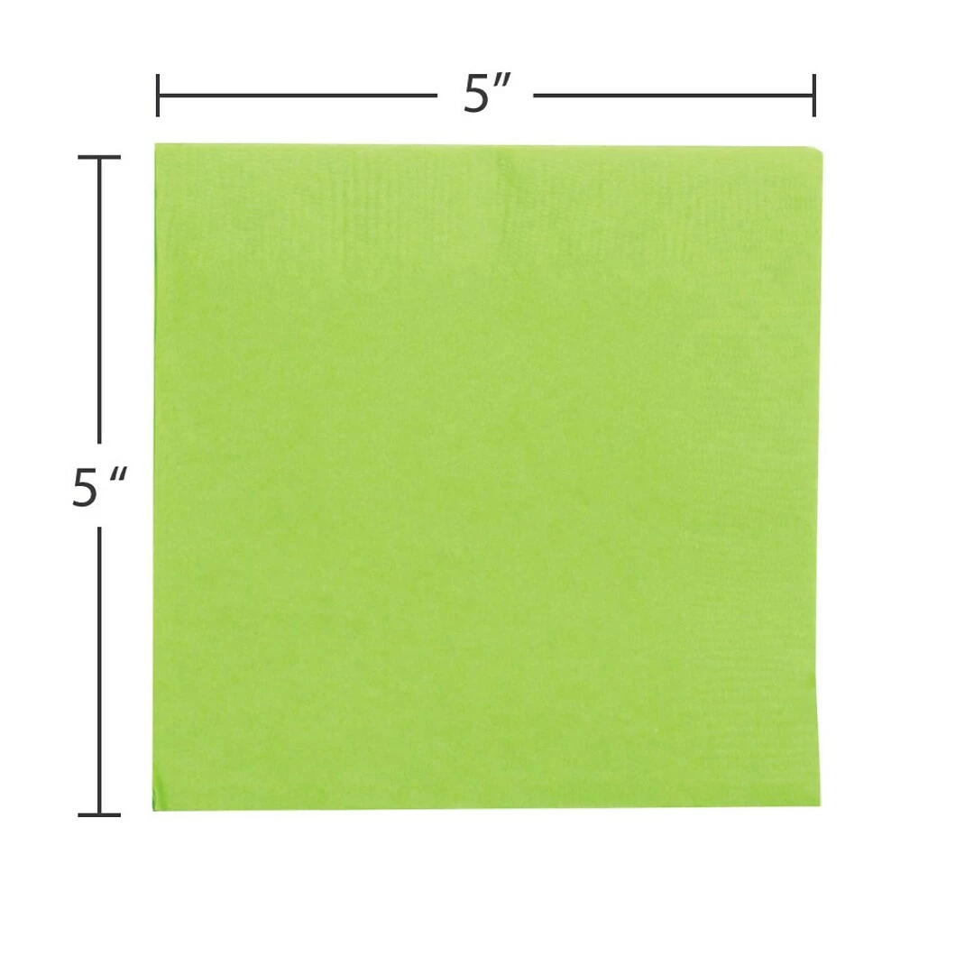 JAM Paper Lime Green Small Beverage Napkins measure 5 x 5 inches in size and are made from smooth and durable paper. A total of 40 napkins are contained in this pack. Each one features a bright and vibrant zesty lime green color! Measuring 5 inches on each side, these napkins are perfectly square. This shape and size makes them great for placing under the glasses and cups on your table to soak up condensation. Their color makes them great for use at birthdays, picnics, baby or bridal showers, summer parties, and more! Complete your table setting with these practical and brightly colored lime green beverage napkins.
