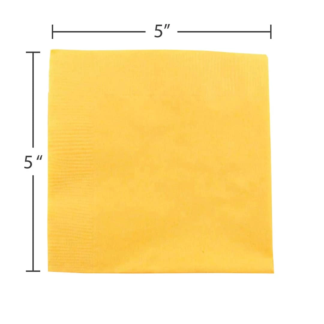 JAM Paper Yellow Small Beverage Napkins measure 5 x 5 inches in size and are made from smooth and durable paper. A total of 40 napkins are contained in this pack. Each one features a bright, sunny and vibrant yellow color! Measuring 5 inches on each side, these napkins are perfectly square. This shape and size makes them great for placing under the glasses and cups on your table to soak up condensation. Their color makes them great for use at birthdays, picnics, weddings, summer parties, Cinco de Mayo parties, and more! Complete your table setting with these practical and brightly colored yellow beverage napkins.