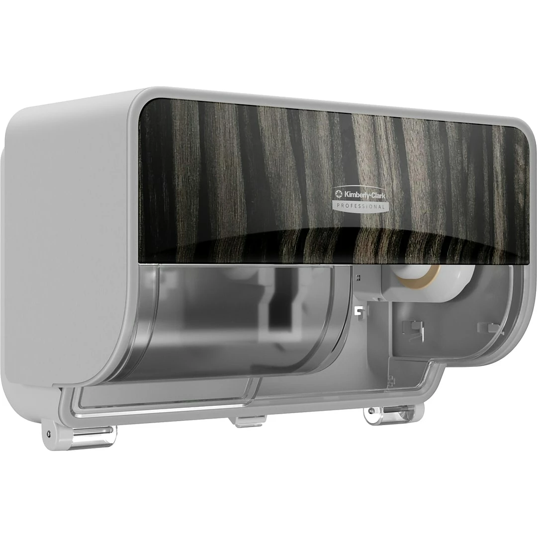 The Kimberly-Clark Professional ICON coreless standard two-roll horizontal toilet paper dispenser with faceplate elevates your restroom aesthetics to the same high standard as the rest of your facility.