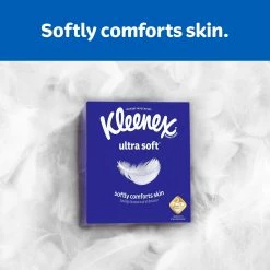 Keep the Kleenex Ultra Soft tissue on hand to care for you, your family, and your guests during cold and flu, allergy, or back-to-school seasons. Kleenex Ultra Soft Facial Tissues feature indulgent 3-layer tissues made to comfort skin and help protect your hands. America’s softest Ultra tissue (among national brands), Kleenex Ultra Soft facial tissues provide a perfect balance of softness and strength.