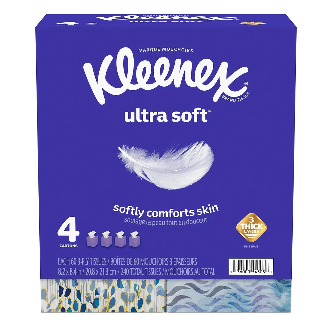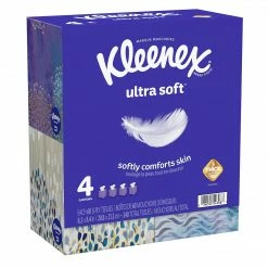Package includes 240 total tissues, 4 packs of 60 Kleenex Ultra Soft tissues that are great for everyday use