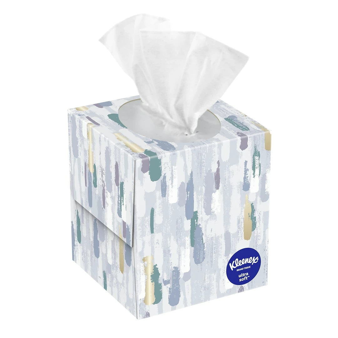 Wipe dripping noses with this facial tissue. Kleenex® Ultra Soft ™ Tissues are indulgent 3-ply tissues that are America’s softest ultra soft tissue* (among national brands). Dependable strength with ultimate softness* (among national brands) make these the best everyday tissues you can get. These Kleenex Ultra Soft facial tissues have a cube-box design for fitting onto small counters.