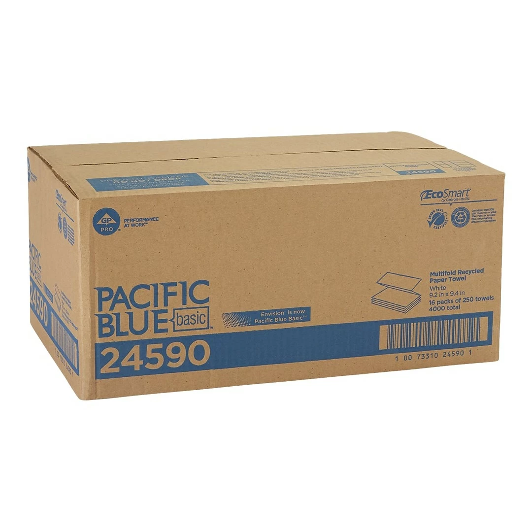 Containing at least 50% post-consumer recycled fiber they meet or exceed EPA Comprehensive Procurement Guidelines, so they’re an economical choice for environmentally concerned customers. They meet Green Seal Standard GS-1 based on chlorine-free processing, energy and water efficiency, and content of 100% recovered material with a minimum of 50% post-consumer material.These quality commercial paper towels can help earn LEED credits and are ideal for washrooms and break rooms in government and public facilities, schools, industrial/manufacturing, retail stores, cafeterias/quick service restaurants and lodging. Pacific Blue Basic Recycled Multifold Paper Towels let you offer your customers quality and reliable performance while helping protect the environment.Universal Folded Paper Towels are an essential supply for a wide range of professional, away-from-home facilities. They come in white and brown colors, with recycled content options available, and different fold configurations including C-Fold, Z-Fold, M-Fold and S-Fold.They are typically dispensed from ‘universal folded towel’ dispensers that are mounted on the wall and available from towel manufacturers. In smaller business environments and restrooms, folded towels are sometimes ‘set out’ in an open tray or simply stacked on the side of a sink or work space.GP PRO is a division of Georgia-Pacific Consumer Products. We deliver well-designed, durable and easy-to-maintain professional solutions to meet the handwashing and cleaning needs for a range of business applications.