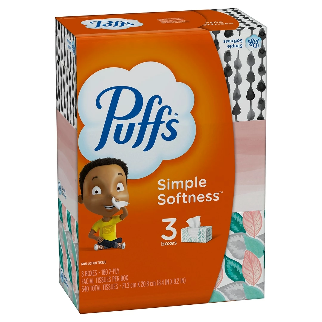Puffs Basic are made for facial use and incorporate two soft layers of fibrous material in every tissue, so the surface is never rough on your skin. If you need extra softness, we also carry lotion-infused Puffs tissues.