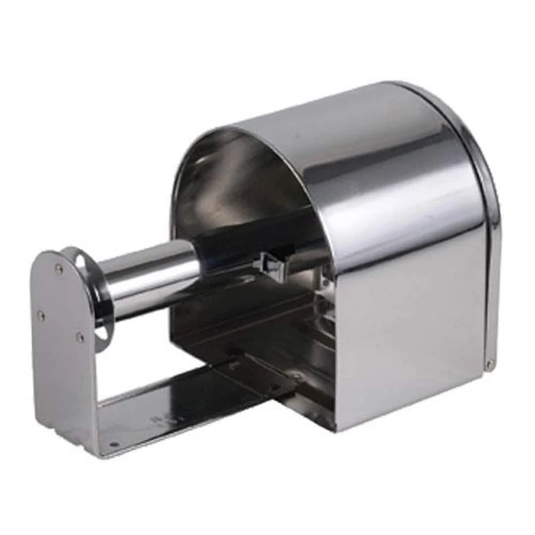 The Covered Reserve Roll Tissue Dispenser features a standard key lock and accommodates any standard bath tissue roll. The protected reserve roll slides easily into dispensing position.