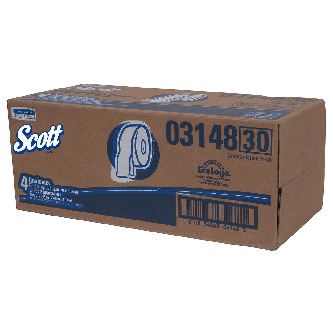Keep restrooms fully supplied with these jumbo rolls of two-ply bath tissue. These rolls are 1000 feet long to supply an ample amount of toilet paper for restrooms so it’s easy to stock up. The two-ply construction ensures the bath tissue is durable and requires less per use than one-ply toilet paper. This Scott Essential two-ply toilet paper comes in four rolls per case, perfect for use in offices, schools, restaurants, hotels, and more.