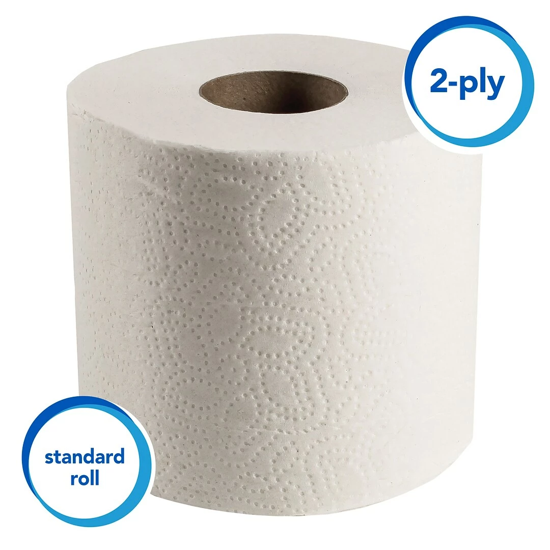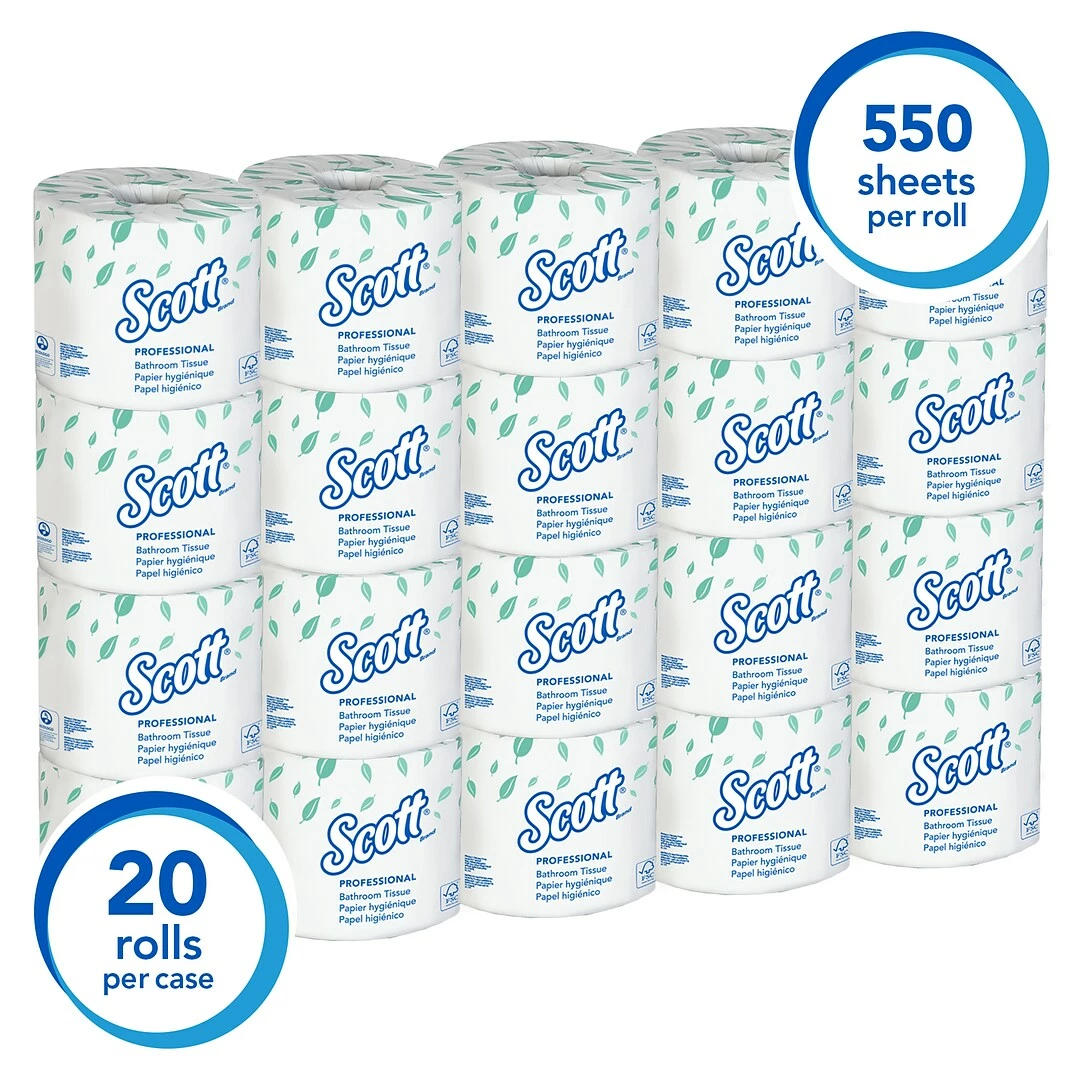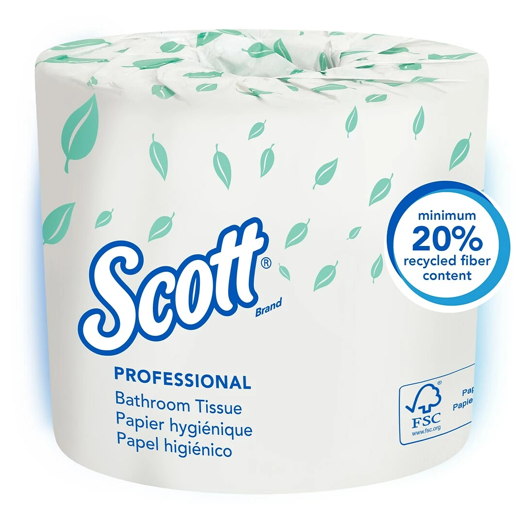 Use these rolls of premium bath tissue to provide a comfortable experience to customers, guests, and employees while also keeping restrooms fully supplied. These rolls of toilet paper are made of 100% recycled content for an environmentally friendly choice and are also EPA, FSC, and EcoLogo certified. This Scott Essential two-ply bath tissue is ideal for use in hotels, schools, restaurants, offices, and more.