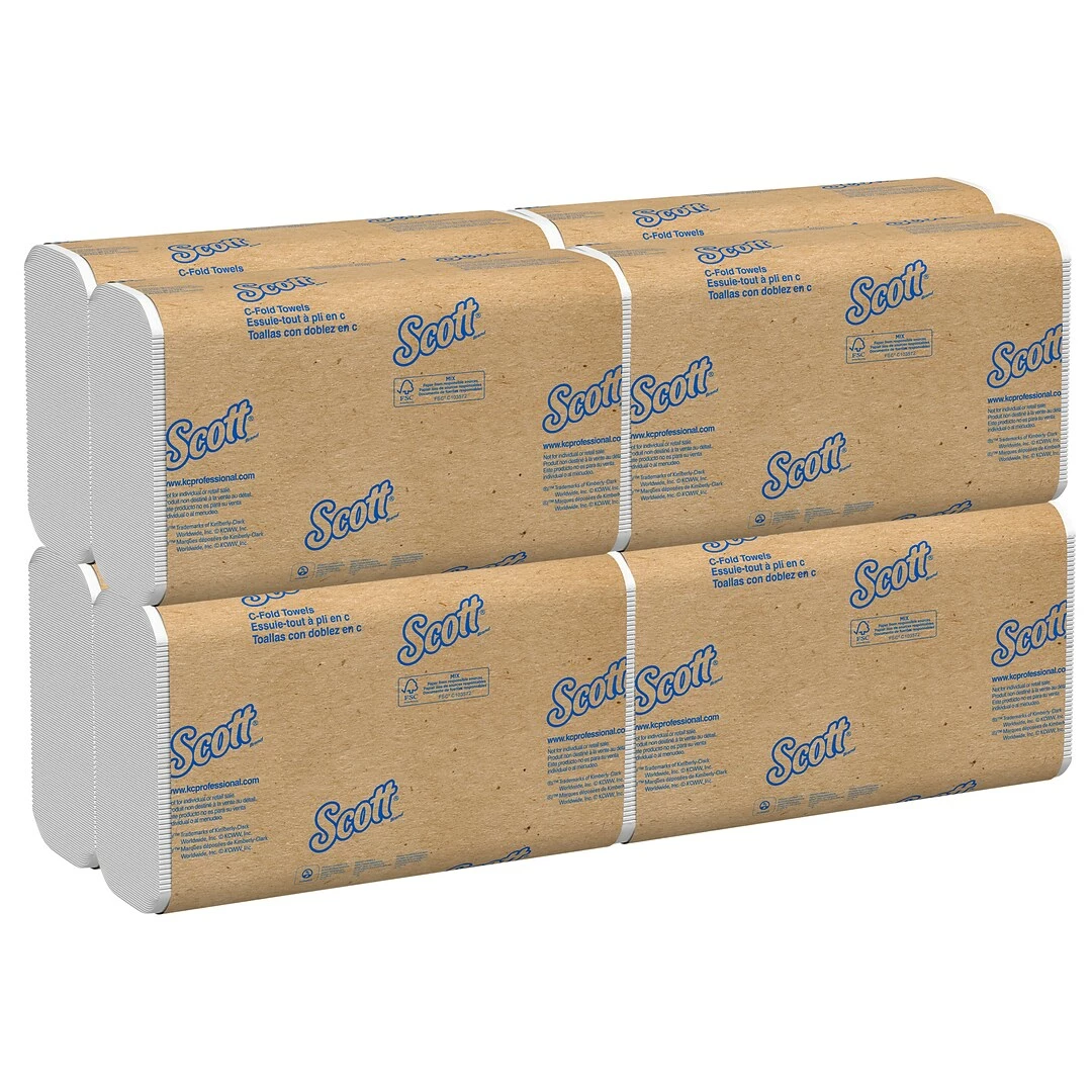 Keep your office clean and tidy with these Scott Essential C-fold paper towels. Built-in absorbency pockets soak up liquid quickly, while the trifold design means these paper towels can be stacked on counters or added to dispensers. Each case features 9 individually wrapped packs of Scott Essential C-fold paper towels, providing a convenient way to distribute them between restrooms and break rooms throughout your building.