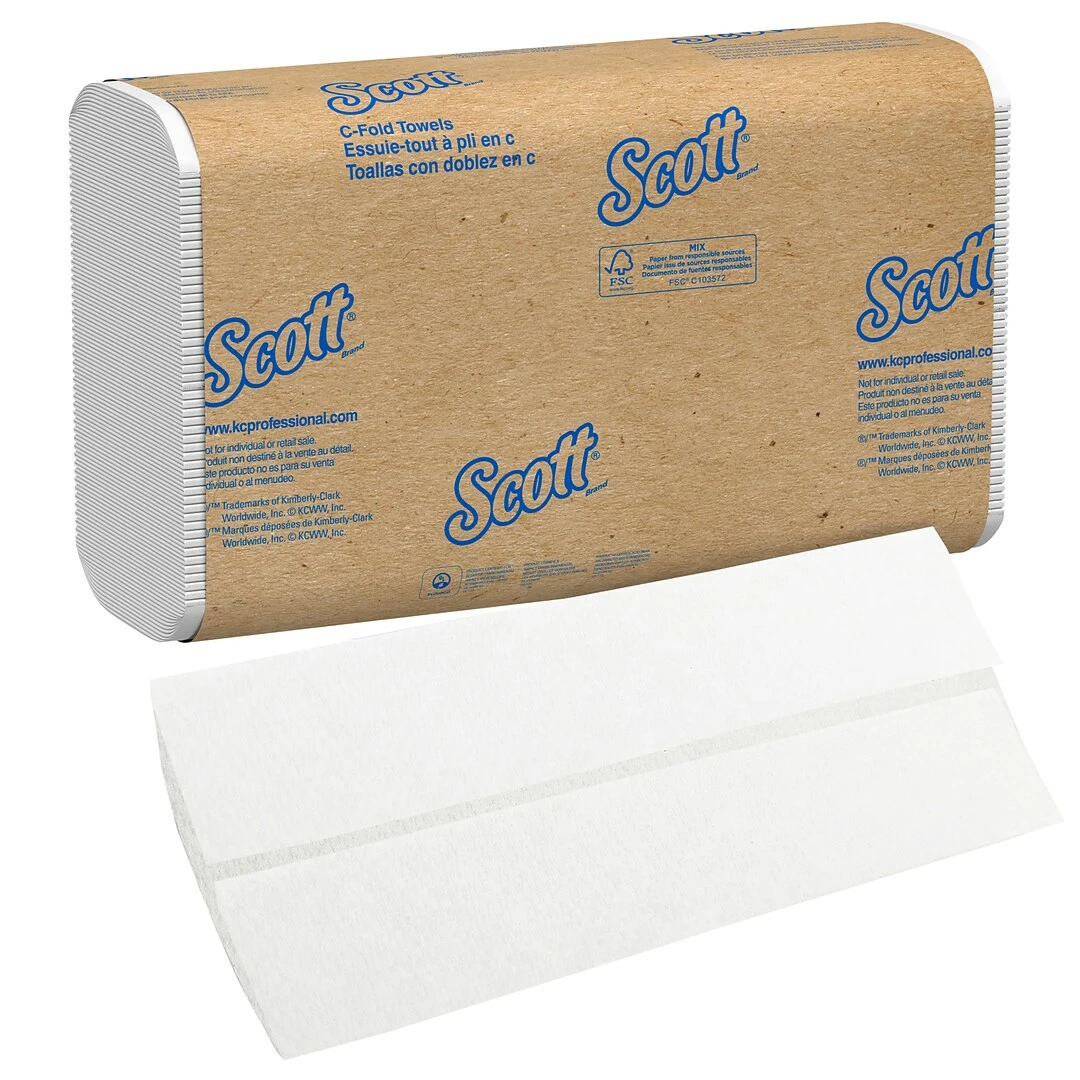 Keep your office clean and tidy with these Scott Essential C-fold paper towels. Built-in absorbency pockets soak up liquid quickly, while the trifold design means these paper towels can be stacked on counters or added to dispensers. Each case features 9 individually wrapped packs of Scott Essential C-fold paper towels, providing a convenient way to distribute them between restrooms and break rooms throughout your building.