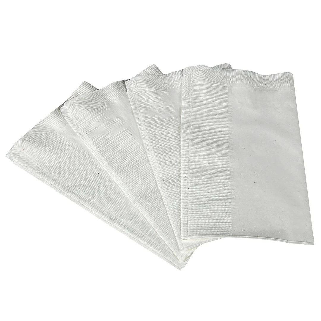 Clean up with these two-ply white dinner napkins. The embossed border of these napkins provides a sophisticated appearance, while the strong two-ply construction provides enhanced absorption and helps prevent them from ripping during use. These Scott two-ply white dinner napkins are soft to the touch for a pleasant experience, and with 3000 in this carton, keeping them stocked up is simple.
