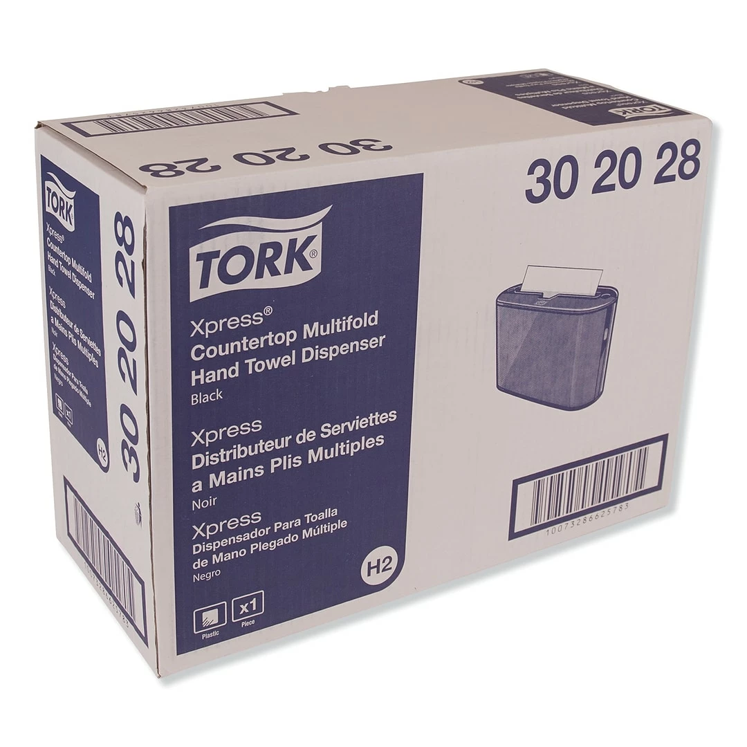 The Tork® Xpress® Countertop Multifold Paper Hand Towel Dispenser serves as a great alternative to providing a stack of loose paper towels on the washroom countertop. Tork Xpress Countertop Dispensers provide a functional, modern design that makes a lasting impression on your restroom visitors. The compact size is ideal when space is limited or mounting is not possible. Offers an upscale look and is more hygienic than a stack of paper towels to prevent cross-contamination. One-at-a-time dispensing reduces cost-in-use and waste.