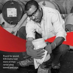 WypAll® X70 Cloths in a BRAG* Box. Durable, absorbent cloths that stay strong for better cleaning performance. Reusable, long lasting performance. Cleans oil, grime, and solvents. Made with our high-tech HYDROKNIT* Fast Absorbing Material. Ideal for all manufacturing and maintenance & repair.